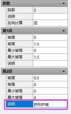 你好,选择边坡,在特性窗户“说明”一栏,写入防护类型即可。模板已安排技术人员着手修改,请关注邮箱。