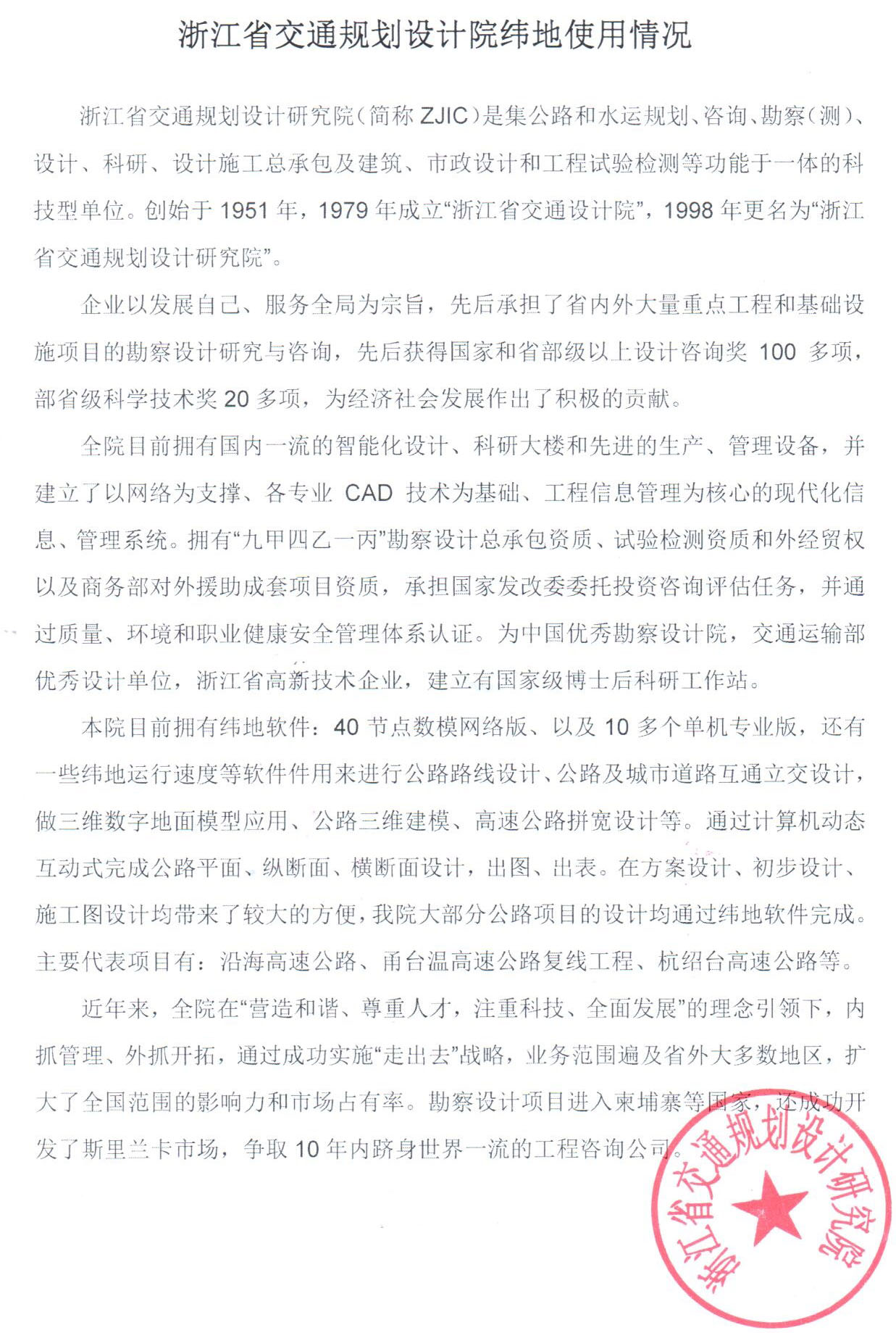 浙江省交通规划设计院纬地使用情况