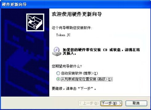 第二步:在打开的硬件更新向导窗口中选择“从列表或指定位置安装(高级)”,并点击下一步。如图: