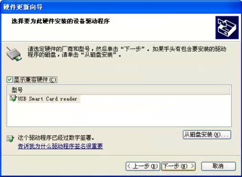 第五步,选择设备驱动程序(USB Smart Card reader),并点击下一步,完成软件锁驱动安装。