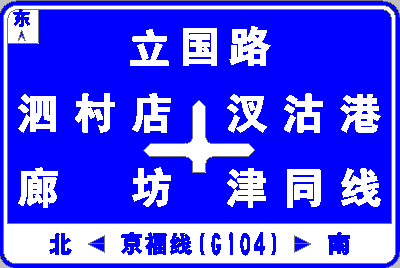 如图1所示标志版面,交叉口两侧的文字关于交叉口标志图形左右对称。首先我们可以将左侧文字(泗村店、廊坊)设置好,接着输入镜像命令(mirror),根据提示指定镜像线两点,系统会自动将左侧文字准确无误地对称显示在交叉口右侧,我们只需将文字内容改为对应地名即可,无需在利用其它辅助功能来调整右侧文字的位置,如图2.
