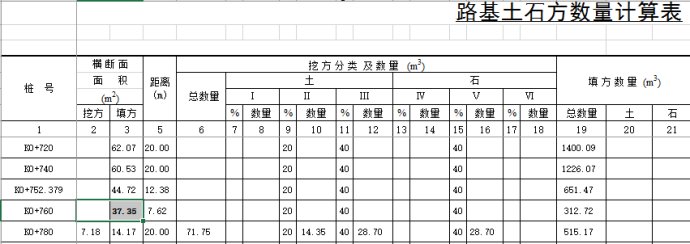 (修改模板前输出的土石方量表)