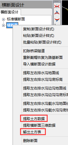 2、输出土石方量计算表时,先在模板路径下指定修改好的土石方量表模板,然后使用有右键点击左侧桩号树下的“横断面”,利用其“提取土方数据”和“输出土方表”功能,对应提取和输出土石方量表如图11所示。