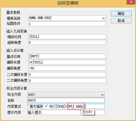 系统弹出模板设置,将其“填方面积”公式设置为如图4所示即可。