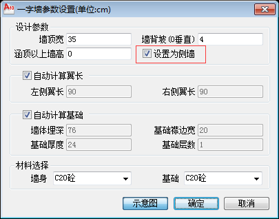 增加拱涵一字墙可设置为“侧墙”的功能。使拱涵洞身接合部设计功能更丰富。