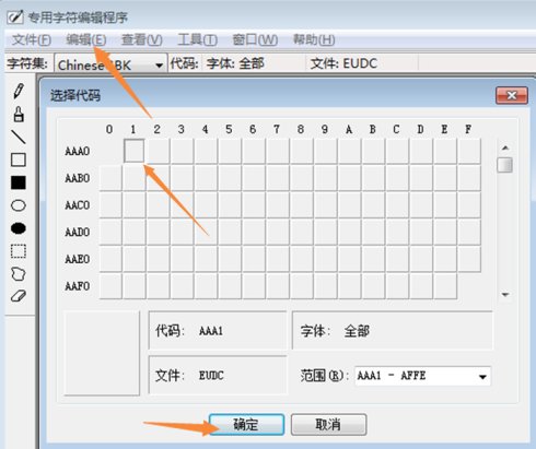 9.接着再重复以上的操作,点击“编辑”下面的“选择代码”,选择第三个格子,点击确定。