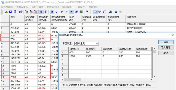 对于低等级道路,规范并未给出或者明确说明隧道段运行速度的计算方法,因此在纬地路线安全分析系统中,目前是这样设置的:
