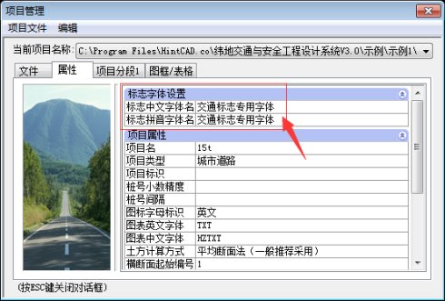 四、对于“标志平面布设图”中的字体、字高,引线的位置,可以打开软件的安装目录: C:\Program Files\HintCAD.co\纬地交通与安全工程设计系统V3.0\系统参数——“标志平面布设图样式.dwg”文件。如下图所示:调整标志平面布设图中的字体、字高等。