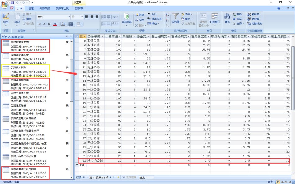 第一步、首先打开纬地安装目录下的“技术指标.mdb”文件(用Microsoft Access打开即可),该文件是开放的数据库,包含了各项路线规范中的参数指标,用户可以根据设计要求的不同自行修改调整相关参数。