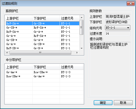 点击“②计算过渡段”,在弹出的对话框中对护栏过渡段的设置规则进行定制修改。