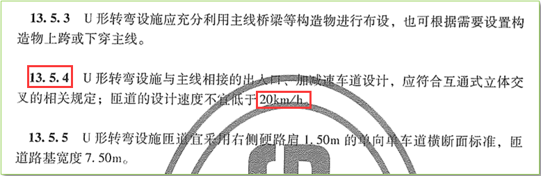 但不能考虑采用公路主线在20~30km/h设计速度时的纵坡控制指标(太大了),因为U型转弯匝道的通行条件(车型组成等)与低等级公路是不同的。