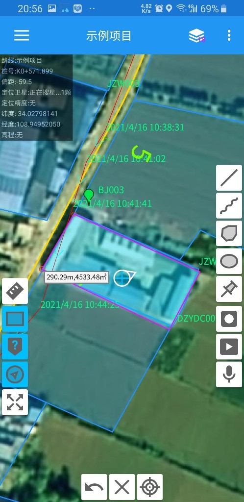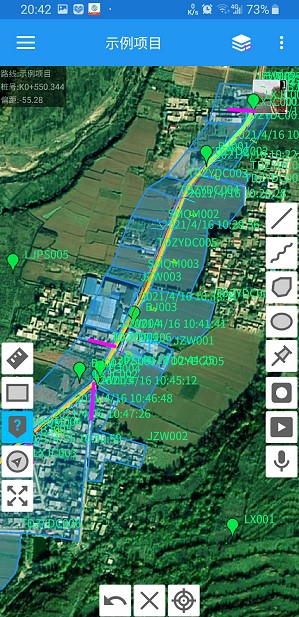 可以快速实时查询路线的任意桩号位置及偏距,以及等高线的标高等信息。快速实时测量任意距离的长度和区域面积。快速绘制各种外业调查图案和标记。比如:手工绘制多段线、闭合多段线、曲线、闭合曲线等多种调查图形。