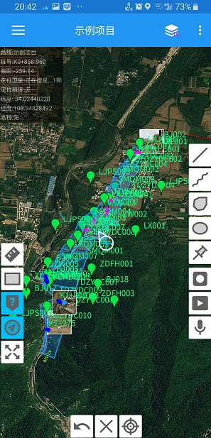 可以直接将CADDWG格式的电子地形图,快速导入纬地外业手薄电脑端,保存为dxta格式的地形图文件,经过外业手薄程序转换之后,另存为*.dxtm格式,即可以导出到手机移动端模块中。加载电子地形图之后,我们就可以实时查看当前项目所在位置的地面高程、等高线的标高,地形的实际高低起伏变化情况,再结合矢量高清影像图,就可以准确的为我们的方案设计及方案优化调整,提供有效的数据支撑。