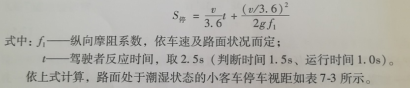 1、规范在7.9节视距的条文解释中,详细给出了小客车的停车视距计算公式,并列出了取值表,规范规定的数值计算过程是明确的。