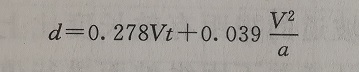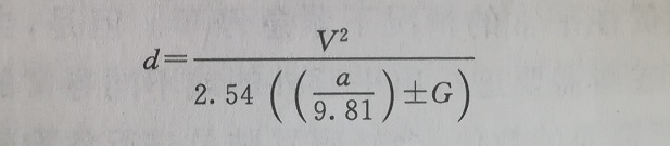 2)视距推算公式的第二部分(第一部分是反应距离,第二部分是制动距离)制动距离,按照下面的公式进行推算,其中,G为纵坡坡度数值。