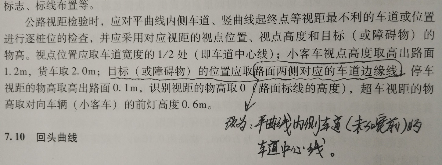 1、关于中央分隔带公路弯道外侧超车车道的视距验算中,中央分隔带外侧超车车道的视点位置距超车道边缘取多少米,规范没有明确要求,网上论文有很多说法,取1.2m,1.5m,车道半宽1.875m等,路线规范有补充说明的吗?